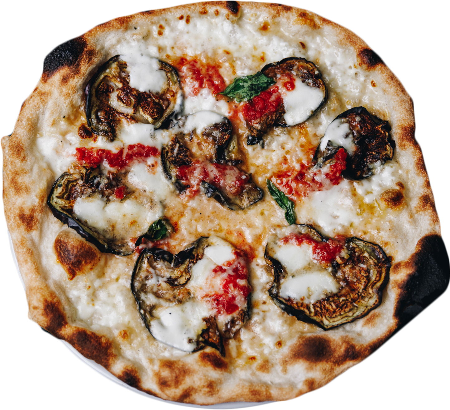 Melanzane al forno, Pomodoro, Grana Padano 20 mesi, Fiordilatte, Basilico ed olio evo